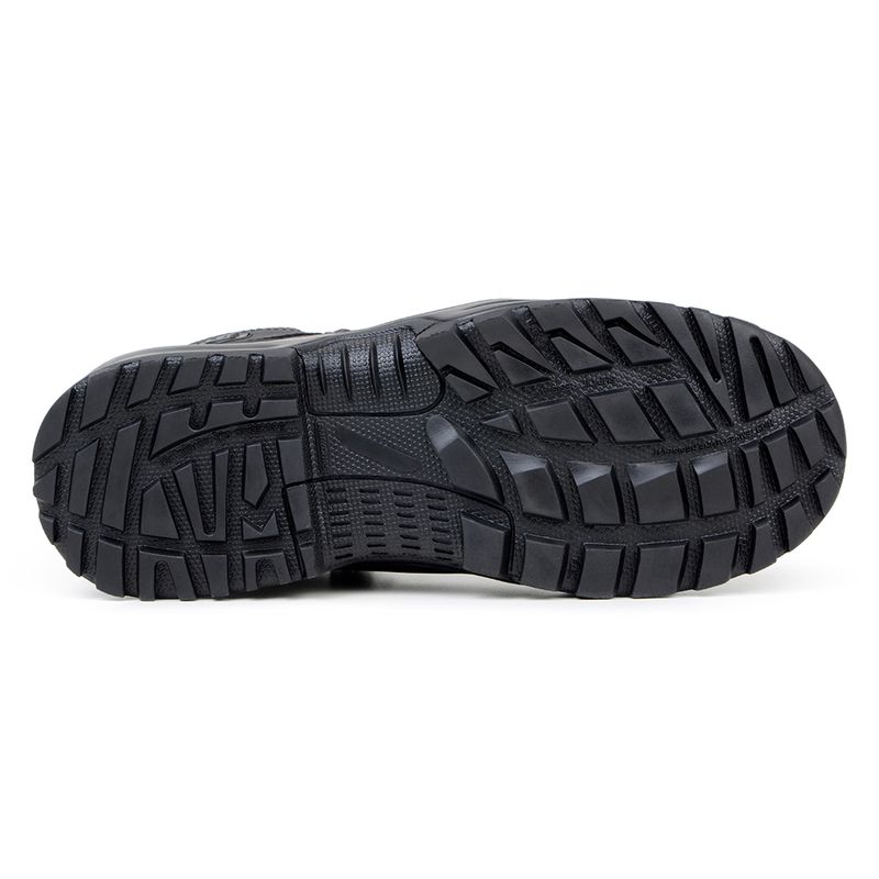 O solado da Bota Brute Alfa, feito em borracha SBR (Styrene-Butadiene Rubber), possui design tático que assegura excepcional aderência em variados terrenos e sob condições extremas, desde altas temperaturas até o frio intenso. Ele também tem o sistema Fast Rope, especialmente desenvolvido para aumentar a segurança durante descidas rápidas ou escaladas com cordas, o que proporciona tranquilidade e segurança em suas aventuras.