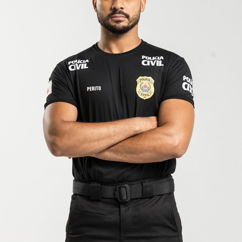 • Silk na cor Branca em torno e nas costas da camisa com a logo Polícia Civil;