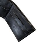 Espaço para 4 cartões (com possibilidade de acumular mais em um mesmo espaço), 2 compartimentos velados para cartões de visitas, 1 espaço estendido para dinheiro e documentos de identidade.