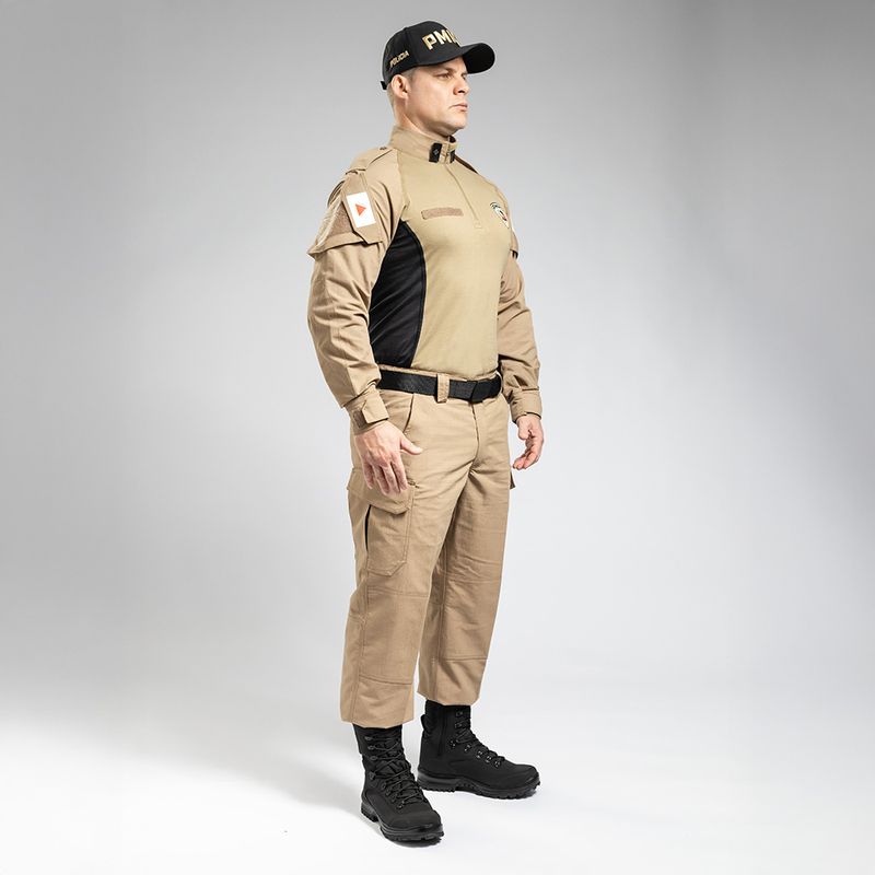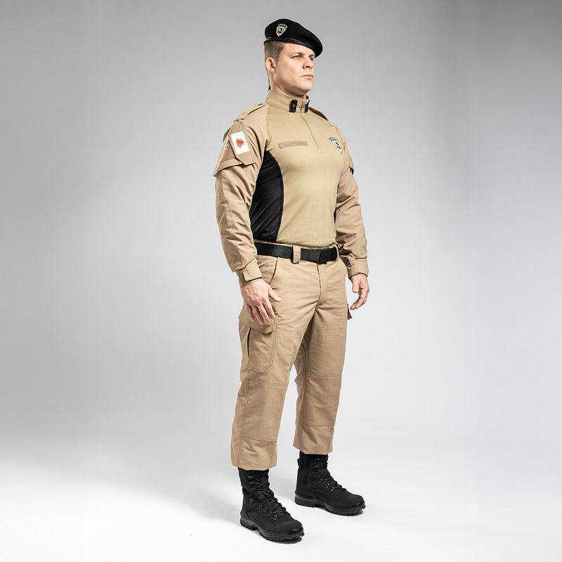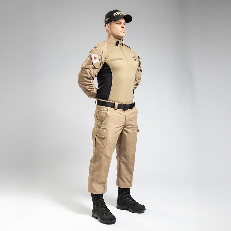 Desenvolvida para o uso operacional, suporta o atrito e o peso do colete balístico e acessórios sem comprometer o conforto.