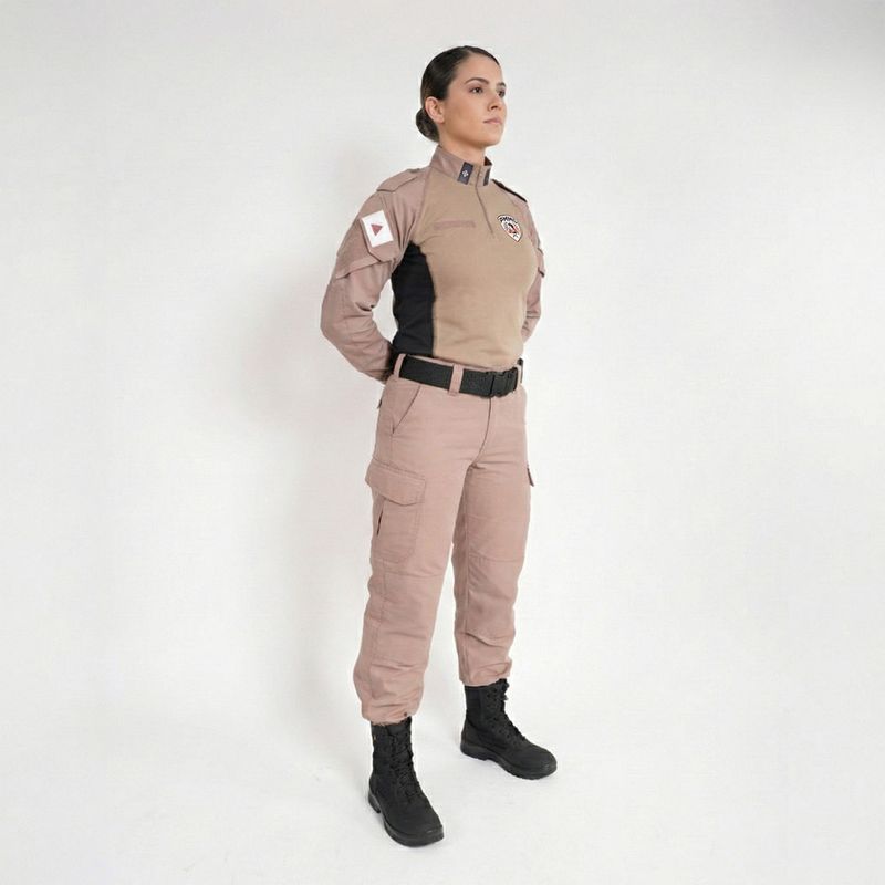 - Área para insígnias na gola: Aplicação em velcro para identificação funcional.