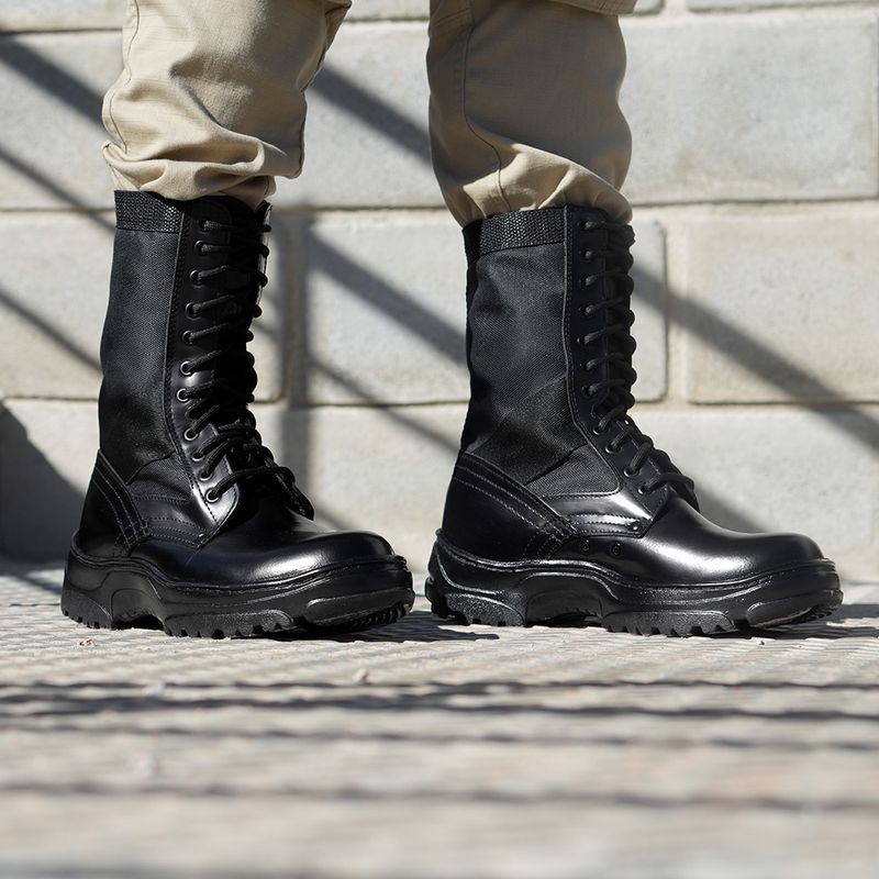 • Solado em borracha SBR (Styrene-Butadiene Rubber), colado e costurado, com resistência térmica de até 300°C.