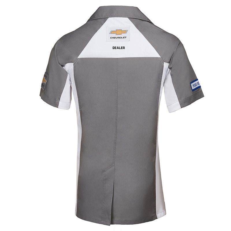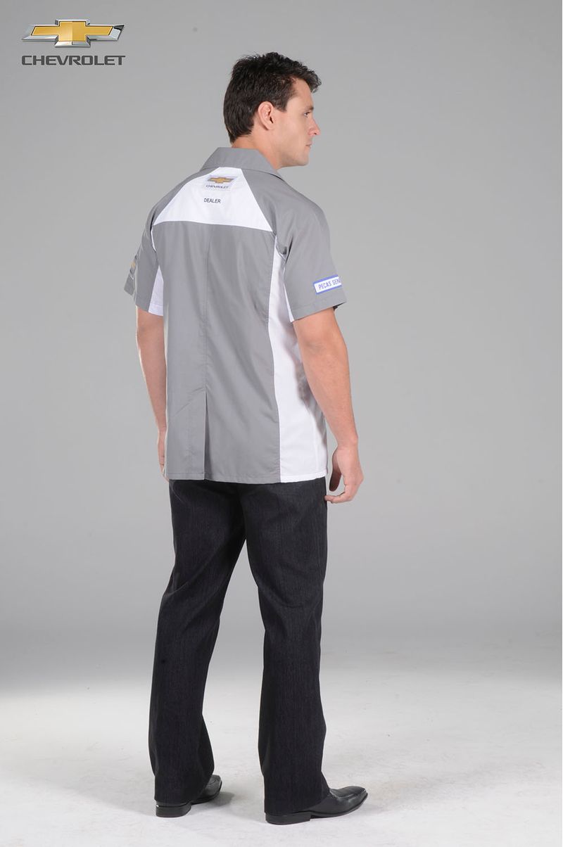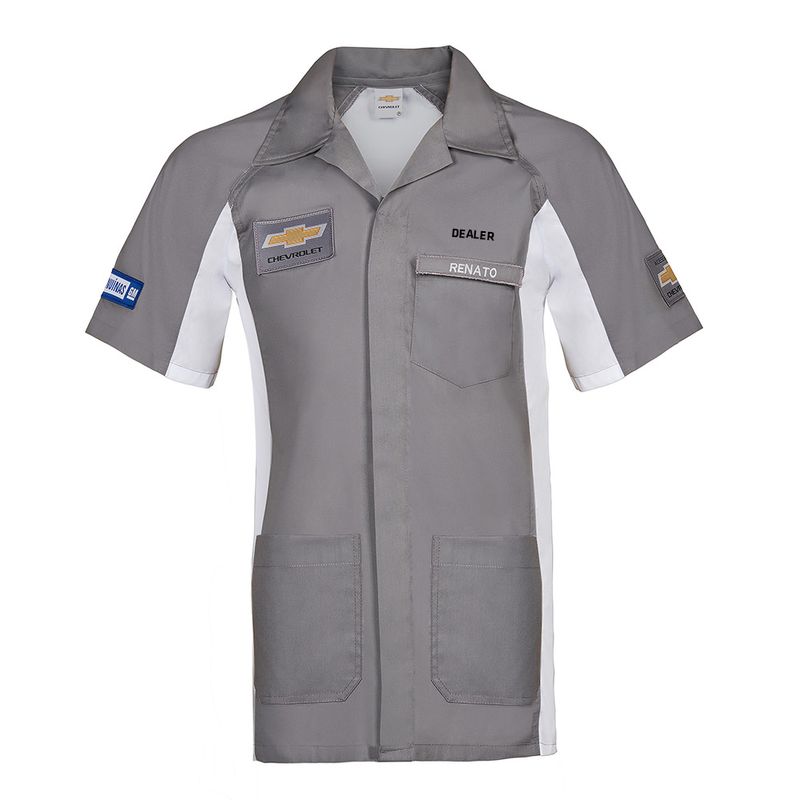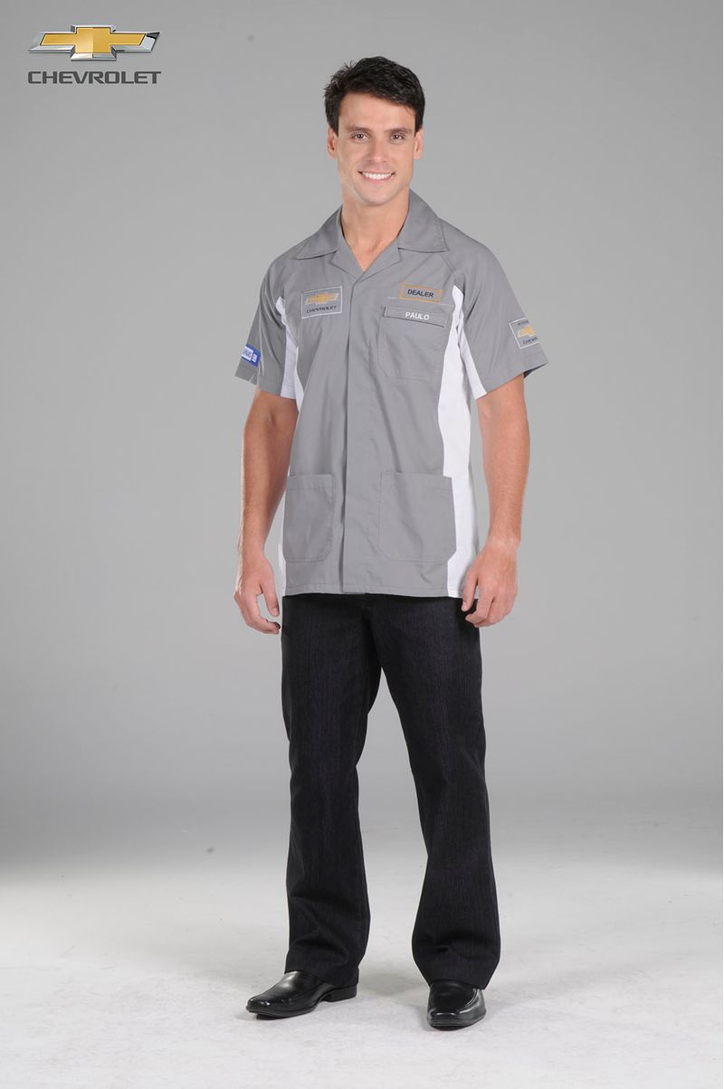 O Jaleco Facilitador Manga Curta Chevrolet faz parte da coleção de uniformes de pós-venda. Além da cor cinza fazer parte da identidade visual da Chevrolet, foi inserido neste uniforme para amenizar o aspecto de resíduo/poeira que pode vir a ter.