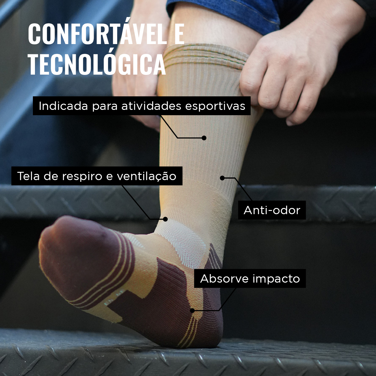 Seu conforto é prioridade! Por isso a Meia Elite Trooper da Citerol tem diversos detalhes fazem a diferença no dia a dia, como: acolchoado na sola para absorver impacto, tela de ventilação para controle térmico, anti-odor BIOTECH® e acabamentos especiais para não puxar os pelos da perna.