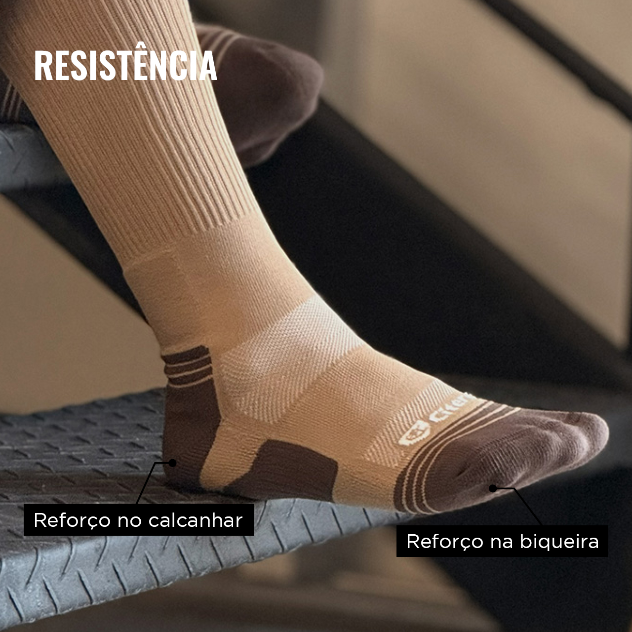 Uma meia de qualidade precisa apresentar uma resistência extra, por isso a Meia Elite Trooper da Citerol é produzida em poliamida de alta performance e tem reforços nas regiões de maior atrito, como: no calcanhar e o Kick Resistance na ponta (região dos dedos).