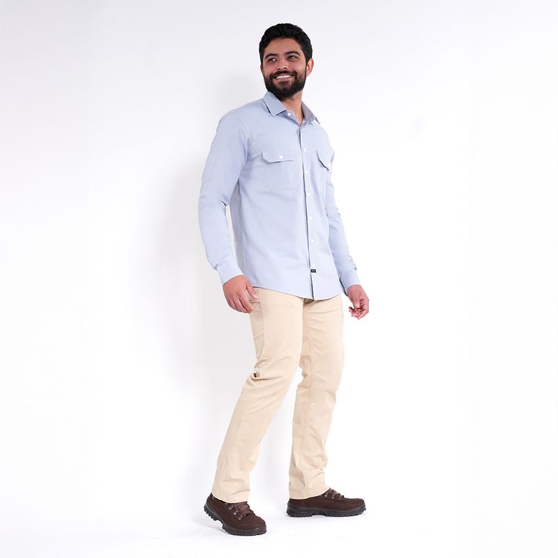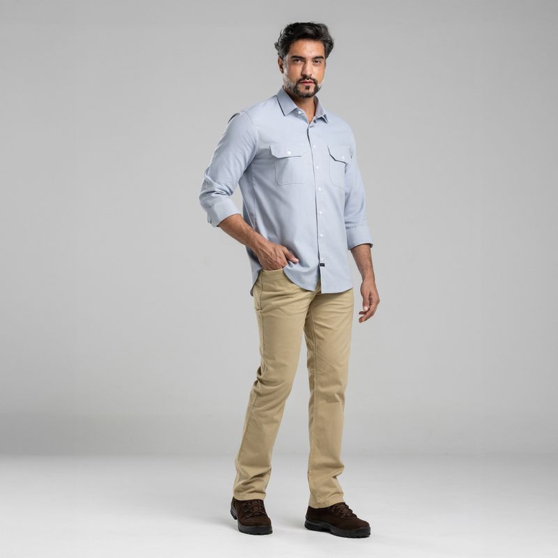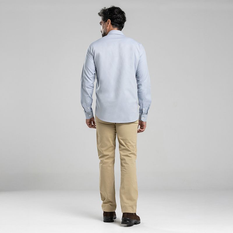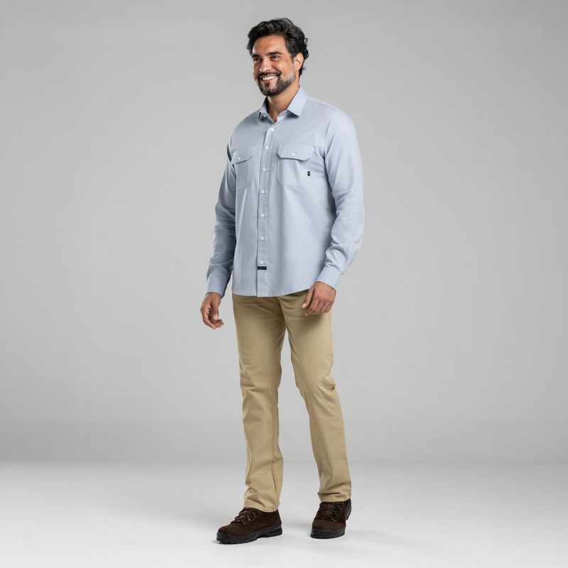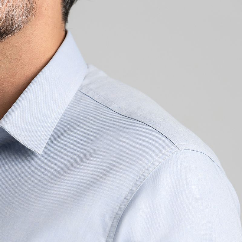 não trava o movimento. É o tipo de camisa que você coloca de manhã e só percebe à noite o quanto o