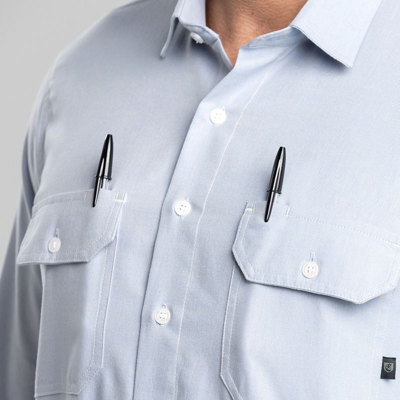 Cada bolso frontal da Workshirt Camisa Rock inclui um compartimento especial para canetas. O bolso esquerdo é ideal para destros, enquanto o bolso direito é perfeito para canhotos.